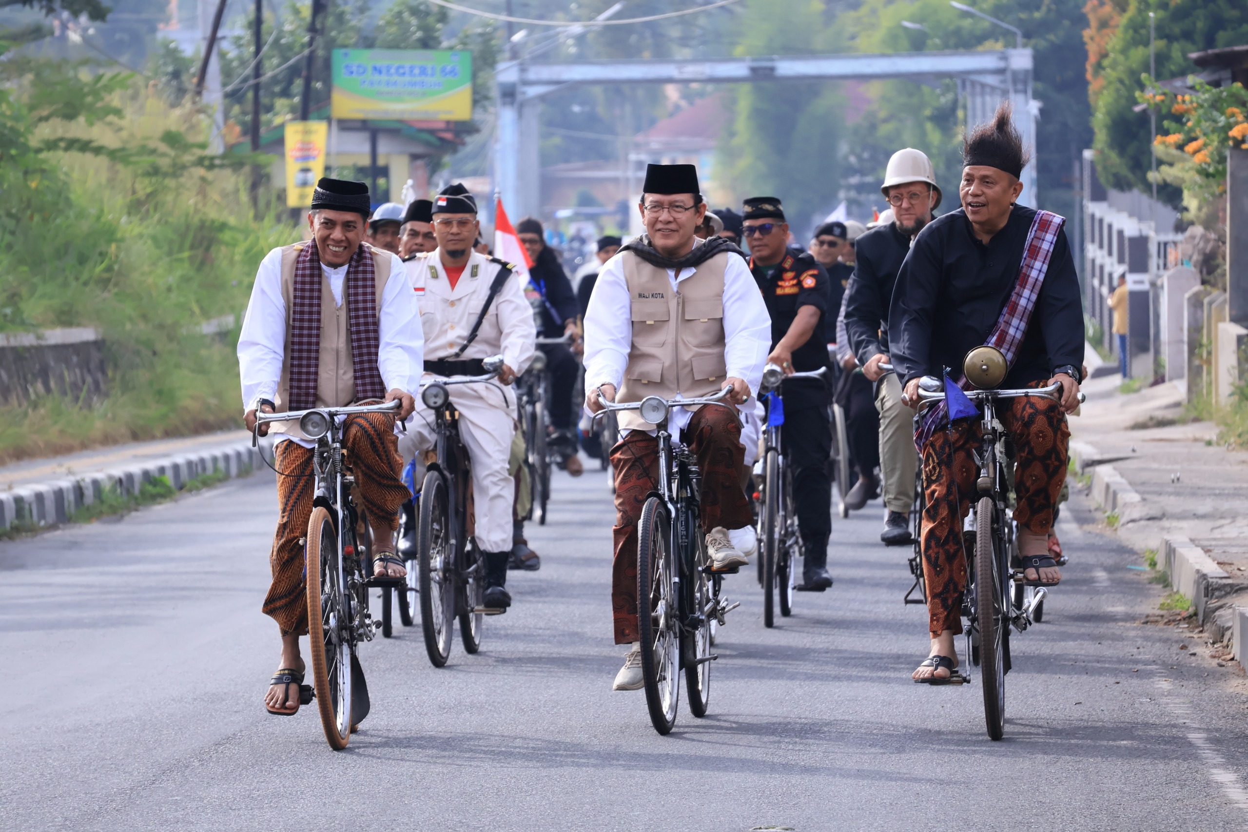 Para peserta tampil memukau dengan sepeda klasik berbagai model, mengenakan busana tempo dulu seperti topi pet, jas safari, kebaya, hingga kain batik.