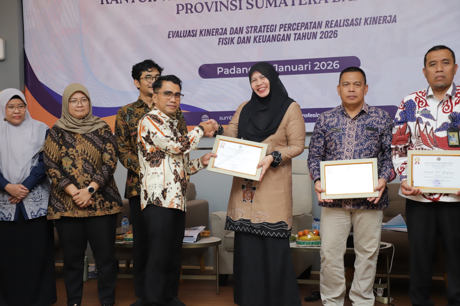 Dalam kesempatan tersebut, Kantor Wilayah BPN Provinsi Sumatera Barat juga menyerahkan piagam penghargaan kinerja terbaik kepada satuan kerja berprestasi. Kantor Pertanahan Kabupaten Lima Puluh Kota berhasil meraih empat piagam penghargaan atas capaian kinerja terbaik pada Rakerda Tahun 2026.