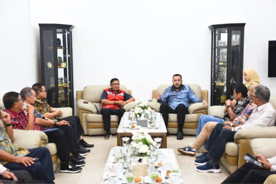 Wali Kota Padang Fadly Amran menerima kunjungan manajemen SJS Plaza, Palang Merah Indonesia (PMI) Kota Padang, serta Himpunan Bersatu Teguh (HBT) di Rumah Dinas Wali Kota Padang, Jumat (16/1/2026).