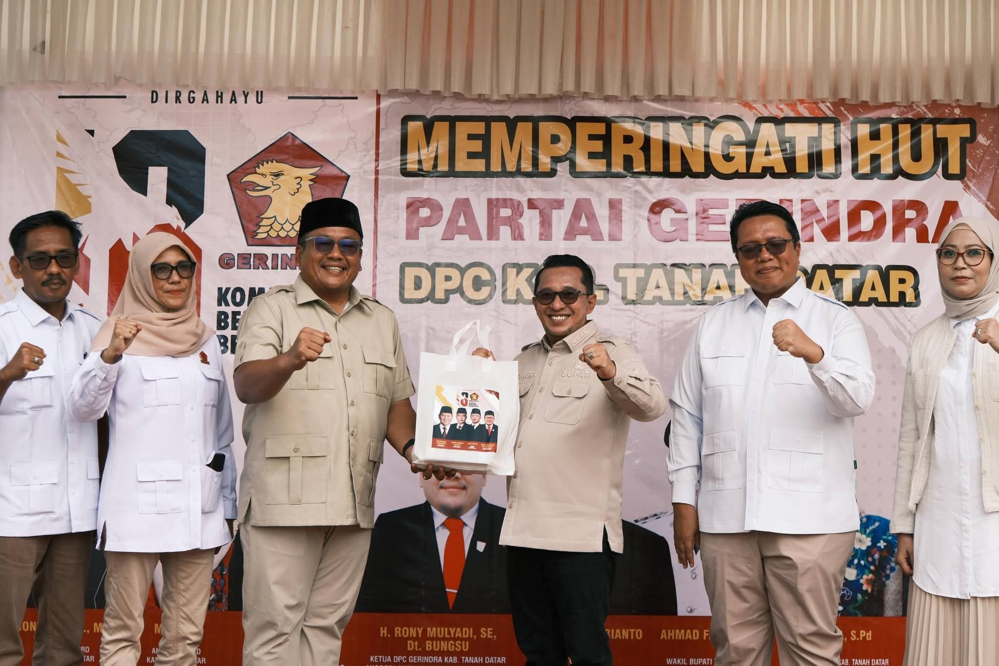 Sebelumnya Ketua DPC Partai Gerindra Tanah Datar H. Rony Mulyadi, S.E., D.T. Bungsu sampaikan sekilas berdirinya Partai Gerindra yaitu pada 6 Februari 2008 lalu oleh tokoh-tokoh nasional termasuk Prabowo Subianto, dan berakar kuat pada semangat nasionalisme, keadilan sosial, dan pembelaan terhadap rakyat kecil.