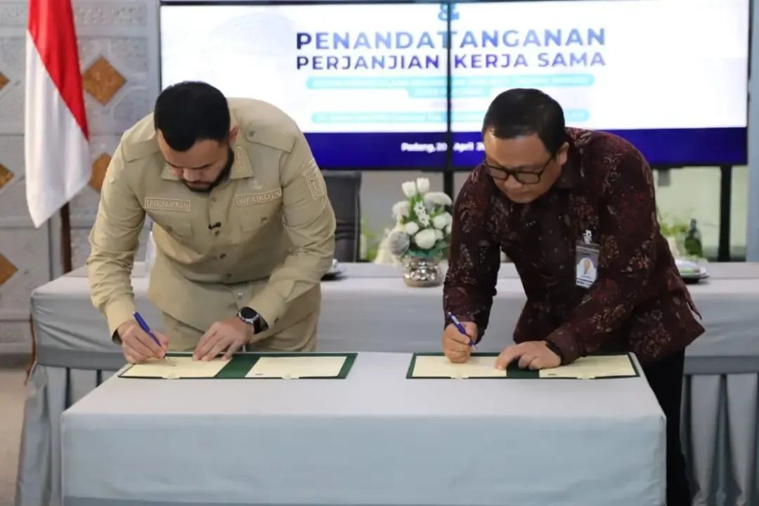 Penandatanganan kesepakatan bersama berlangsung di Gedung Putih, komplek Rumah Dinas Wali Kota, Senin (20/4/2026), dilakukan langsung oleh Fadly Amran selaku Wali Kota Padang bersama Vice President PT Bank Mandiri (Persero) Tbk Area Padang, Feri Cahyono.